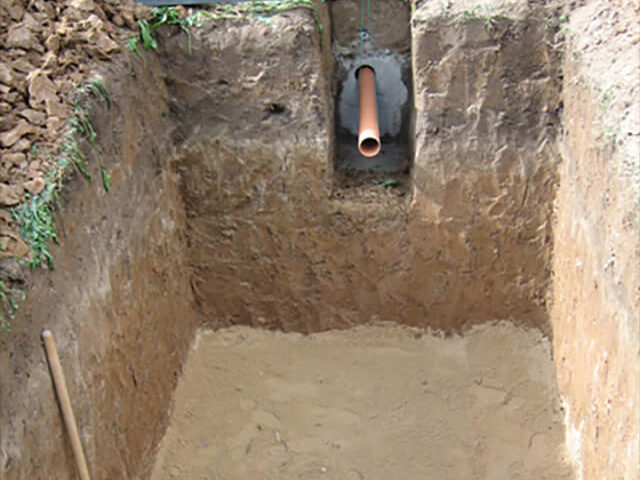 - Подготовка котлована для очистительной конструкции и траншей для укладки труб (она выполняется с учетом проекта и особенностей почв).